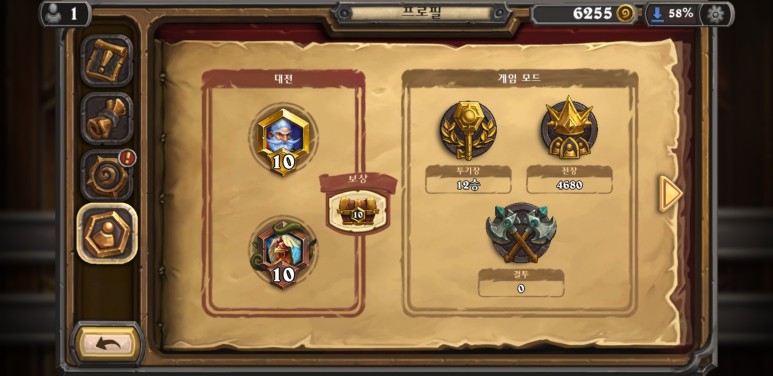 무료 쿠폰 쟁여놓은 게 1장 있어서 오랜만에 투기장도 해봤지만, 결과는 3승 3패 황밸.