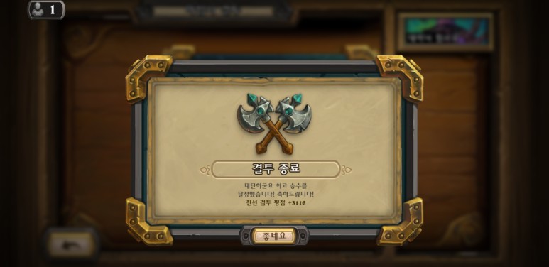 하여튼 이렇게 하스스톤 연어질 결산이었습니다. 이러고 게임 삭제했기는 해도, 이래놓고 다음에 또 새 확장팩 나오면 복귀할 것 같습니다. 하스스톤도 시즌제 게임의 하나이다 보니 연어 메타에 딱이네요.ㅎㅎ