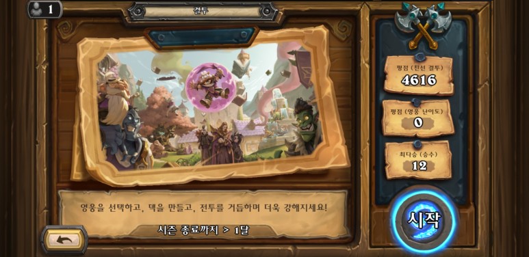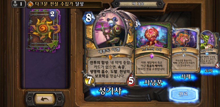 1월 22일 19.4 패치로 다크문 경주 미니 세트가 하스스톤에 업데이트됐는데요, 전설 4장을 포함한 66장의 카드들을 겨우 2000골드면 살 수 있다는 얘기를 듣고 잠시 하스스톤에 복귀했습니다. 그런