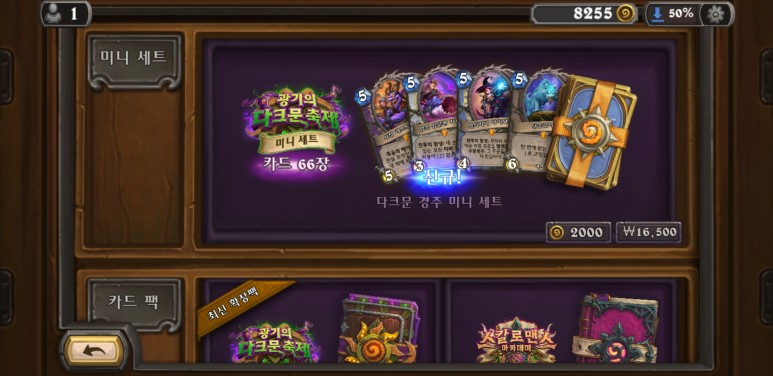 새로 업데이트된 다크문 경주 미니 세트가 싸다는 소문에 또 하스스톤에 복귀했습니다.