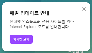 네이버 웨일에 접속했더니 이런 알림이 떠서 뭔가 싶어서 봤더니, 2022년 6월 15일부로 인터넷 익스플로러 11이 종료되므로 웨일에서 관련 지원 서비스를 제공한다고 합니다.