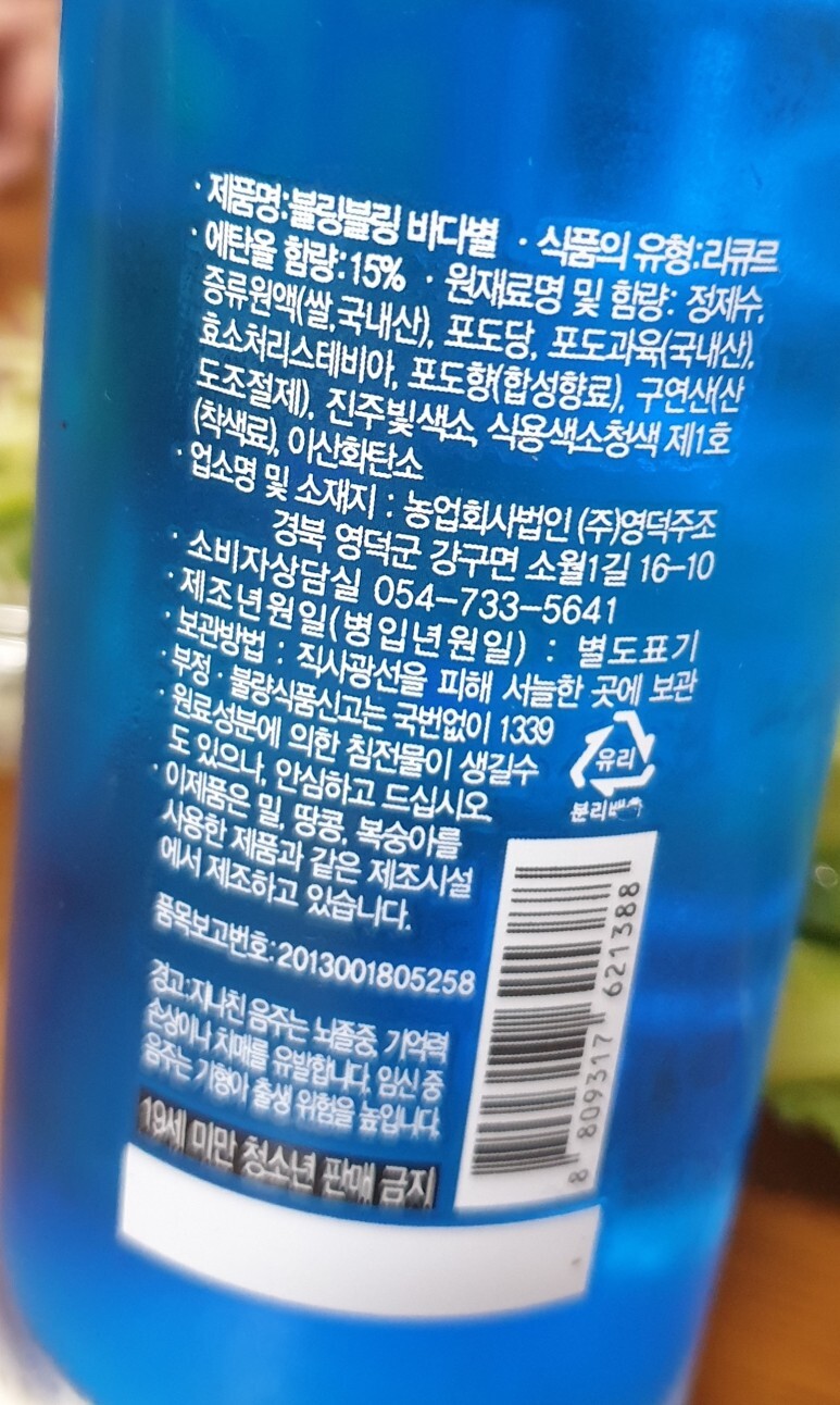 도수도 15도나 된다는데 왜 이렇게 술맛이 가벼운지... 상품 설명을 보면 탄산수나 토닉 워터에 섞어 먹는 걸 추천한다는데, 제 기준으로는 그냥 마셔도 애매한 걸 섞어마시면 이게 어울릴까 싶었습니다.