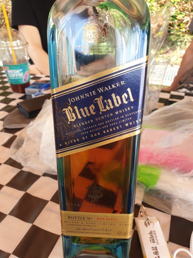뭐, 가격은 비교도 안 되고 술 색이 파랗지도 않습니다만, 저는 파란 술이라고 할 거면 그냥 블루 라벨 마실래요.