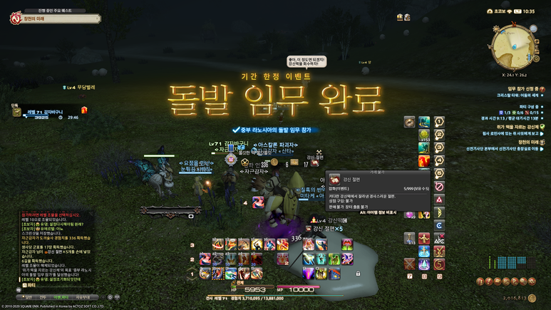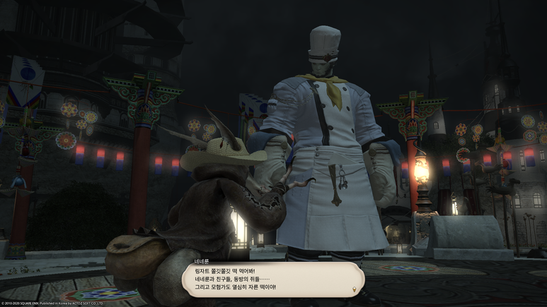 그리고 막상 다른 이벤트 아이템들을 더 사기 위해서 강신 절편을 구하려고 하면, 돌발 임무가 잘 등장하지도 않아서 한참을 기다려야 합니다. 그렇다고 돌발 임무가 없을 때 따로 떡 종사관이 떡을 찧고 있는 모습을 볼 수 있는 것도 아니다 보니, 이번 이벤트는 바로 전의 크리스마스 시즈널 이벤트인 '2019 별빛 축제'와 비교하면 많이 별로네요.