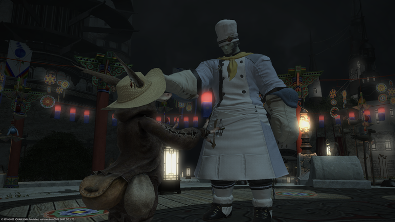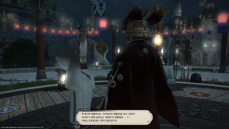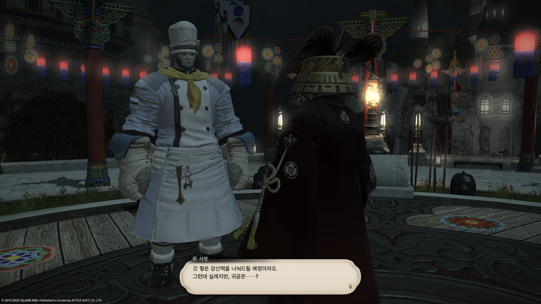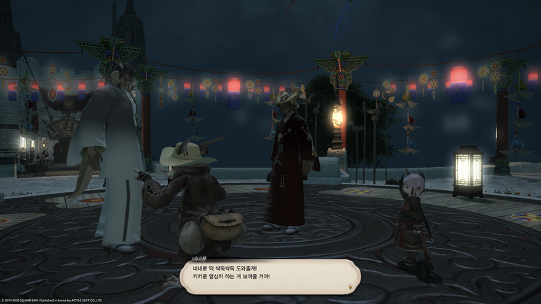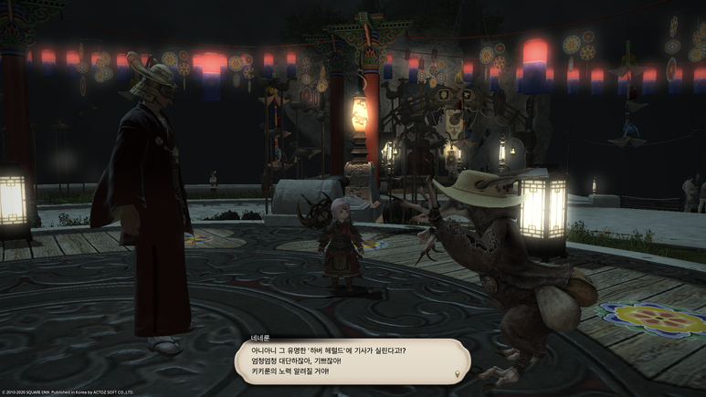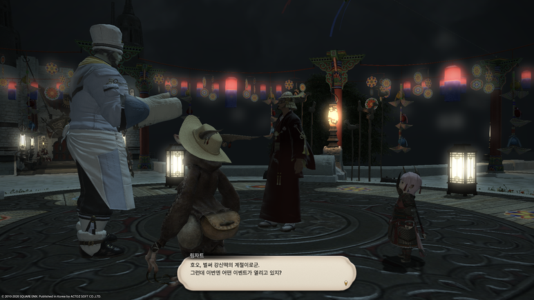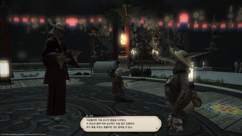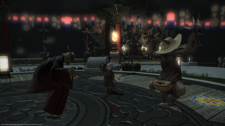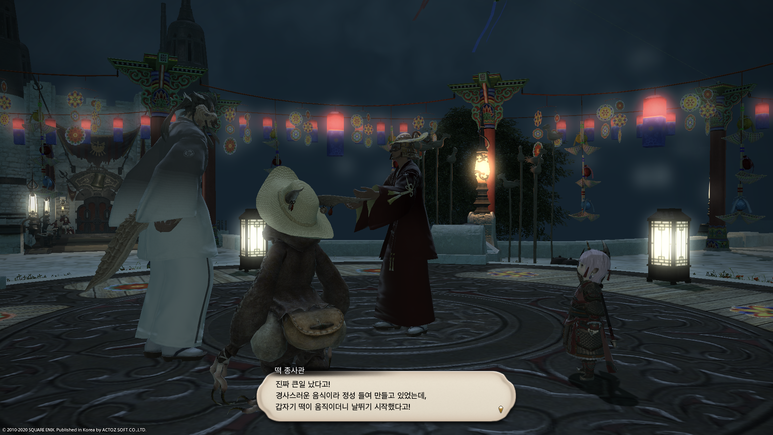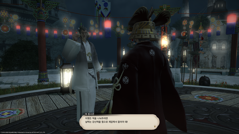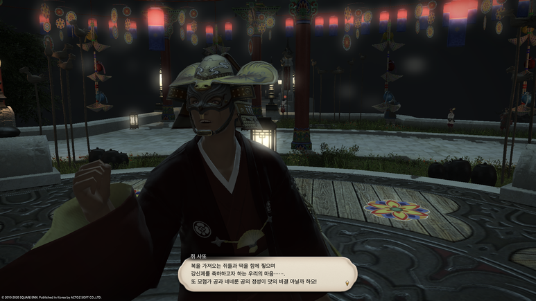 무대 가운데의 쥐 사또에게 말을 걸면 기간 한정 이벤트 퀘스트인 '쥐가 떡을 자르는 강신제' 퀘스트를 받을 수 있습니다.