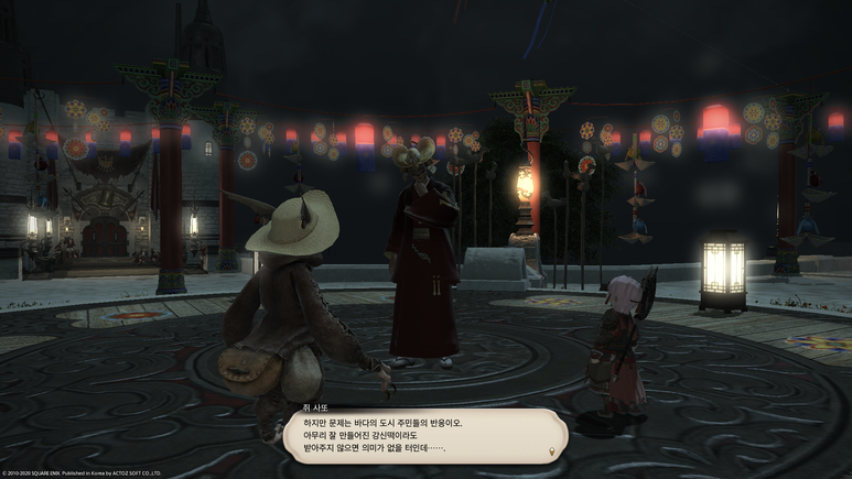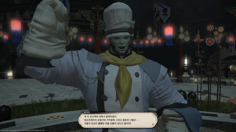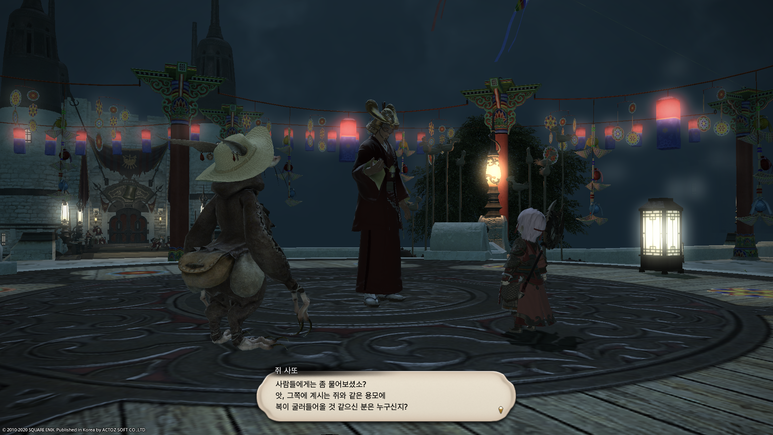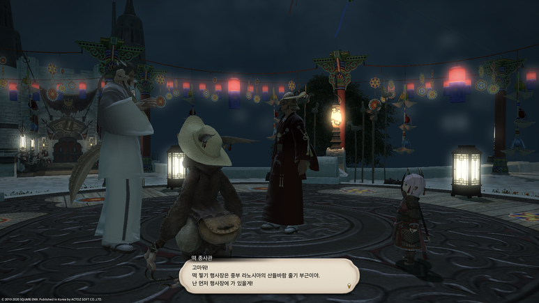 뱃고물 광장에서 '쥐 포졸'에게 말을 걸면 자신들은 강신제의 계절을 맞아 동방에서 온 사절단이라고 합니다.