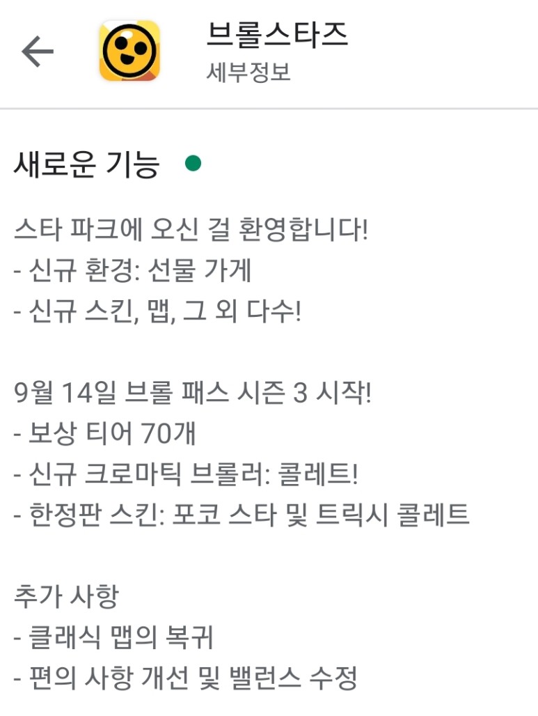 9월 14일부터 시작하는 브롤 패스 시즌 3 '스타 파크'에 앞서 9월 11일에 여러 사항이 패치되었습니다.