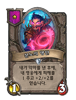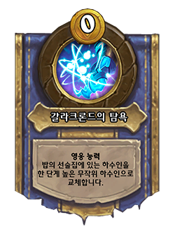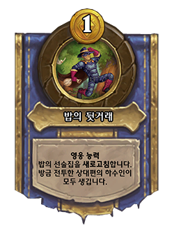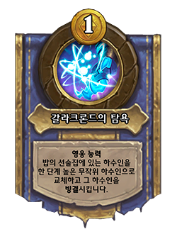변경 전: [비용 0] 아군 하수인을 없앱니다. 그 하수인보다 한 단계 낮은 무작위 하수인을 얻습니다. → 변경 후: [비용 1] 아군 하수인을 없앱니다. 그 하수인보다 한 단계 낮은 무작위 하수인을 발견합니다.