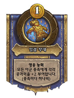 변경 전: 전투의 함성: 아군 종족 하나당 무작위로 적응합니다. → 변경 후: 전투의 함성: 다른 아군 하수인의 종족 하나당 무작위로 적응합니다.