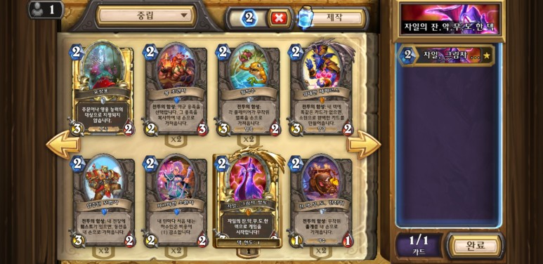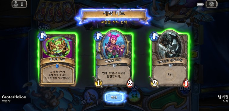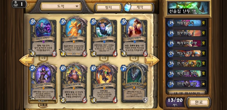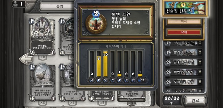 여기에 무작위 10장의 직업 주문이 추가된 덱으로 게임을 진행하게 됩니다.