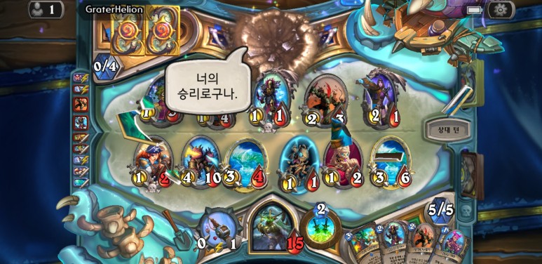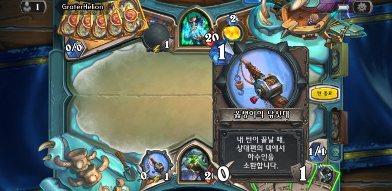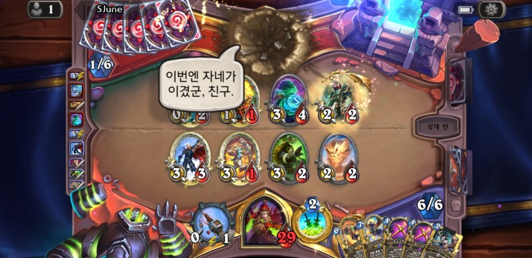 하지만 내 덱에서 무거운 하수인이 튀어나갈 수도 있기 때문에 체력 30의 메리트가 크다고 보기는 힘들겠네요.