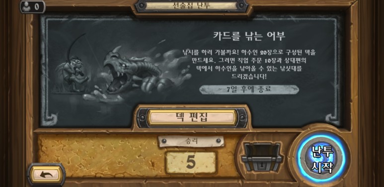 2020년 11월 12일부터 일주일 동안 진행되는 하스스톤 선술집 난투는 '카드를 낚는 어부'입니다. 용을 낚는 멀록이 커엽군요.