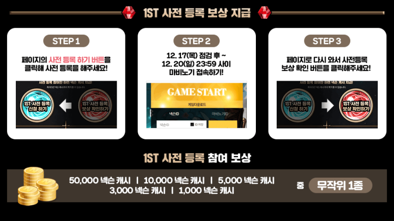 마침 프리시즌이기도 하고, 이번에 진행하는 사전등록 이벤트에 신청하고 게임에 접속만 하면 무조건 넥슨 캐시(최대 10만 캐시)를 획득할 수도 있다고 하니, 이벤트 참여 기간 맞춰서 오랜만에 마비나 켜 봐야겠습니다.