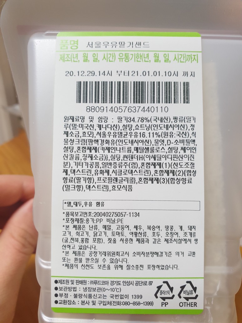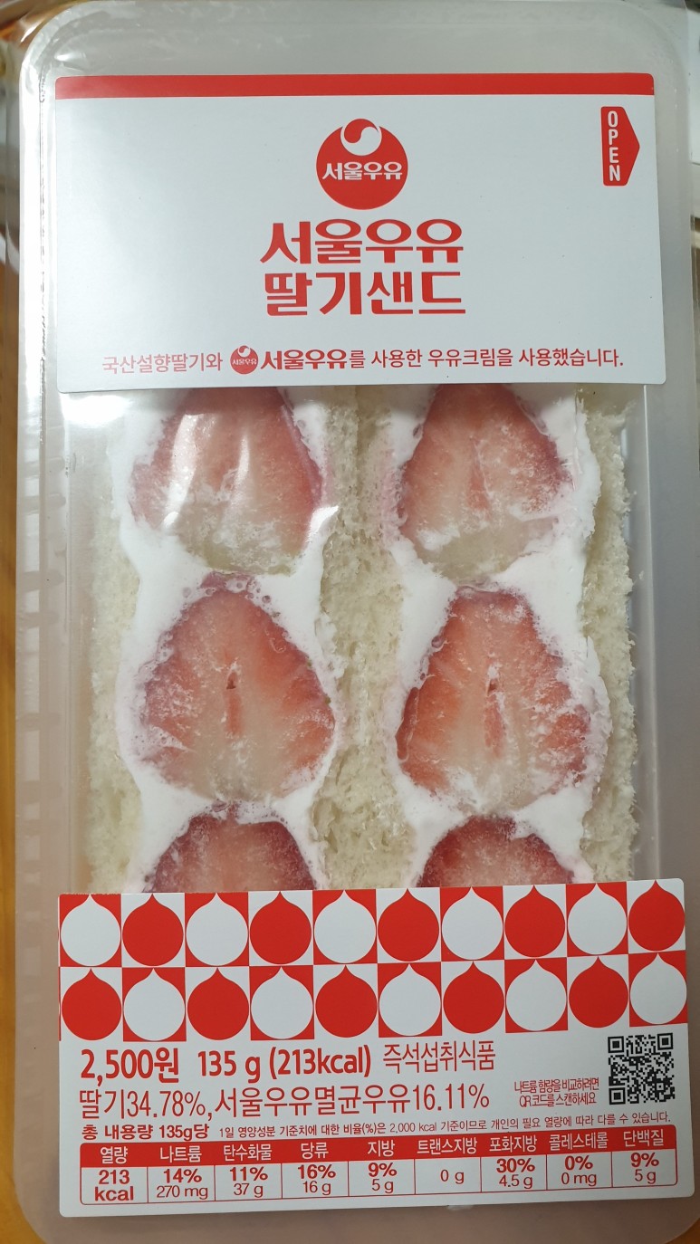 CU의 딸기 샌드위치는 서울우유와 제휴를 해 '서울우유 딸기샌드'라는 이름을 달고 나왔습니다.