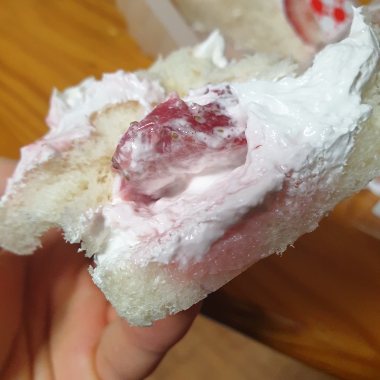 개인적으로는 GS 버전이 더 좋습니다. 둘 다 딸기의 상큼함과 크림의 달달함에 중점을 둔 제품인 건 동일하지만, 크림의 차이 때문인지 CU 버전은 좀 느끼하네요.