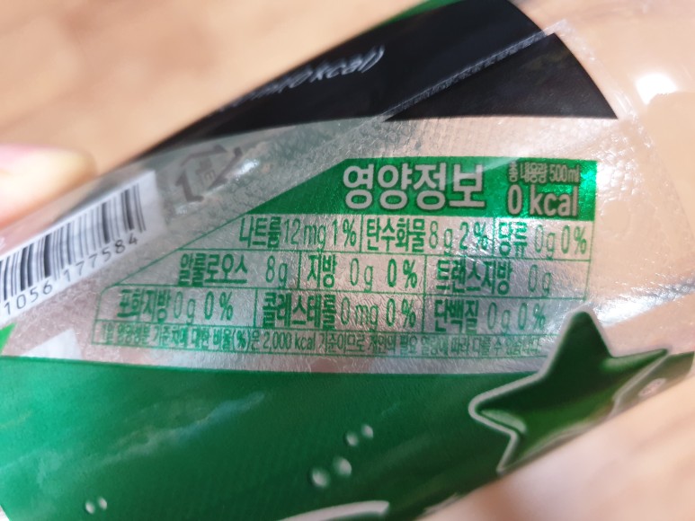 위 사진이 잘 안 보이는 분들을 위해 적어 드리자면, '정제수, 색상알룰로스, 이산화탄소, 천연향료(레몬라임향), 구연산, 천연향료(레몬향), 수크랄로스(감미료), 아세설팜칼륨(감미료)'가 함유돼 있다고 합니다. 기존 칠성사이다에서 설탕과 기타과당을 빼고 알룰로스, 수크랄로스, 아세설팜칼륨의 세 가지 인공감미료를 추가한 구성이죠.