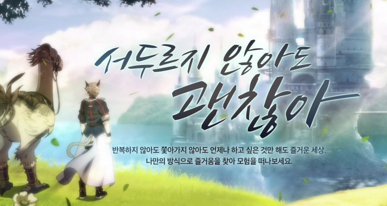 전체적으로 높은 게임 완성도로 인해 호평받은 칠흑의 반역자 확장팩 론칭 이후 다시 한번 전성기를 구가하고 있는 파이널판타지14에서 2021년 2월 16일, 새로운 브랜딩 애니메이션 '서두르지 않아도 괜찮아'를 공개했습니다.