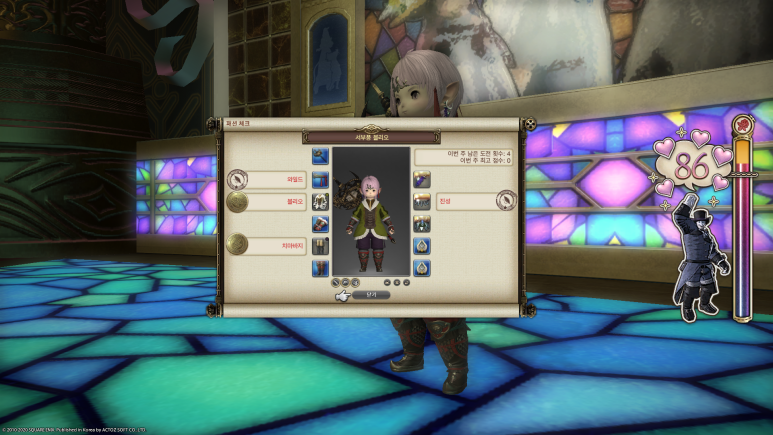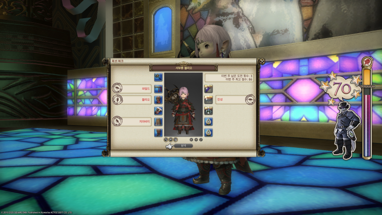 패션 체크는 매주 화요일 5시에 테마가 바뀌는데요, 보시다시피 두 피스만 맞춰도 쉽게 80점을 넘길 수 있으므로 미리 테마에 맞는 옷이 뭔지 찾아보고 가는 걸 추천합니다.