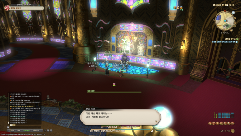 골드 소서를 개방한 다음에 '르웨나'를 찾아 '가면 신사의 패션 체크'를 진행할 수 있습니다.