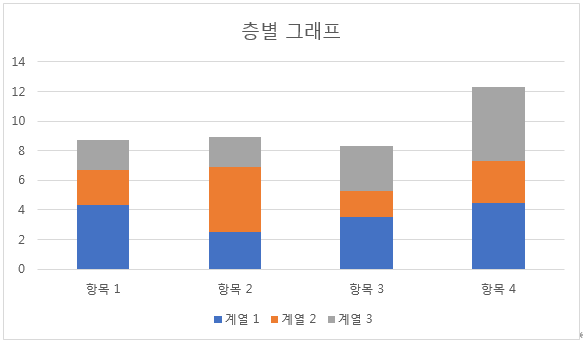 - 그래프의 중간에 눈금선을 넣지 않아야 하며, 층별로 색이 서로 달라야 한다.