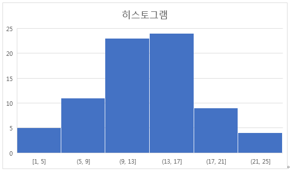 - 가로축에는 값의 범위를, 세로축에는 해당 범위에 속하는 값의 개수를 나타낸다.