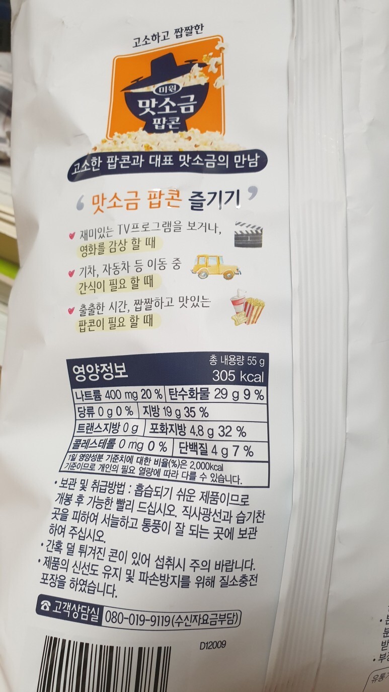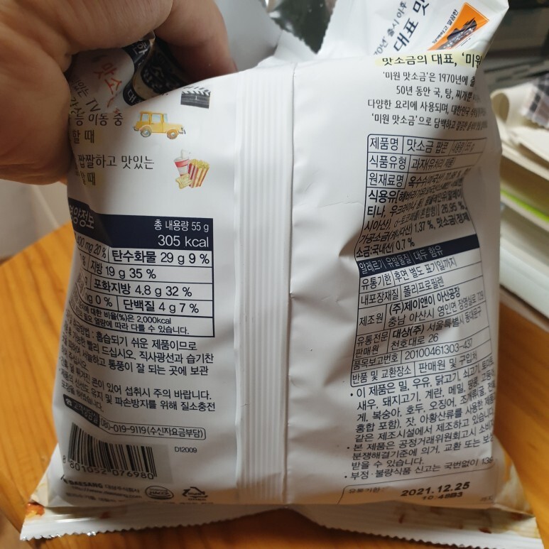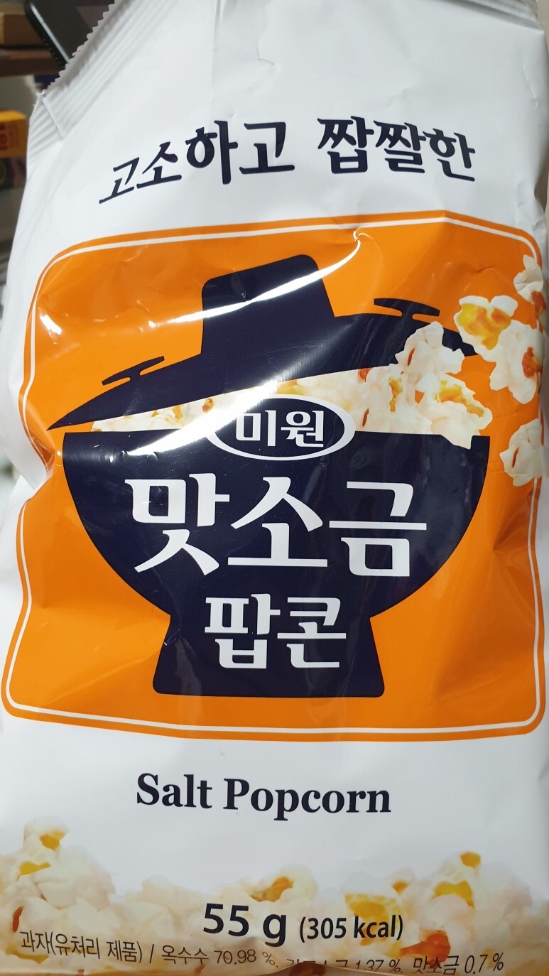 맛은 평범합니다. 맛소금과 콜라보한 게 특징일 뿐, 애초에 들어간 게 옥수수, 기름, 소금 이게 다니까요.