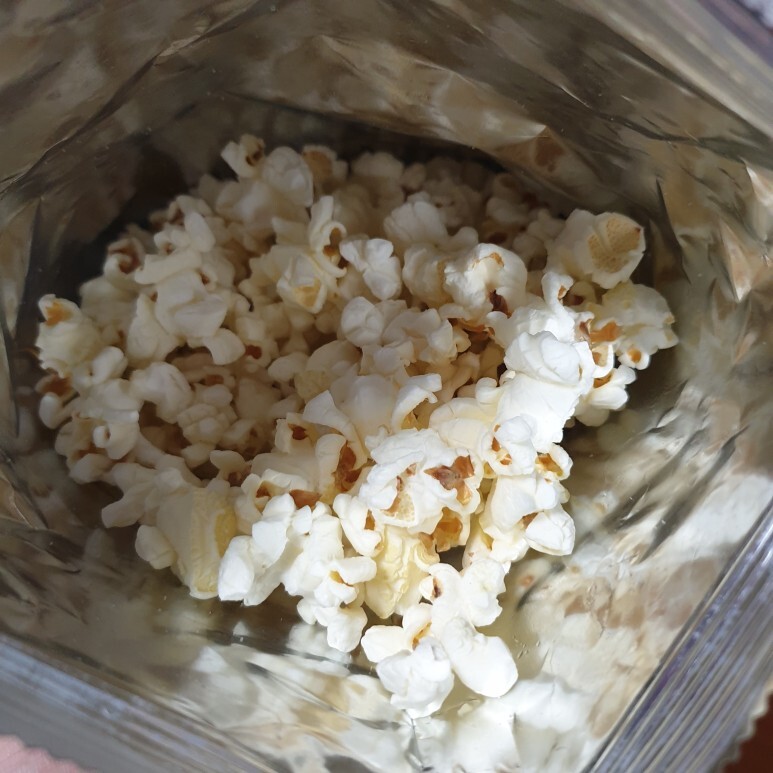 양은 꽤 많습니다. 팝콘이란 게 원래 부피에서 뻥카가 있는 음식이기는 합니다만, 1500원에 이 정도 양이면 과자치고 가성비가 좋은 느낌이네요.