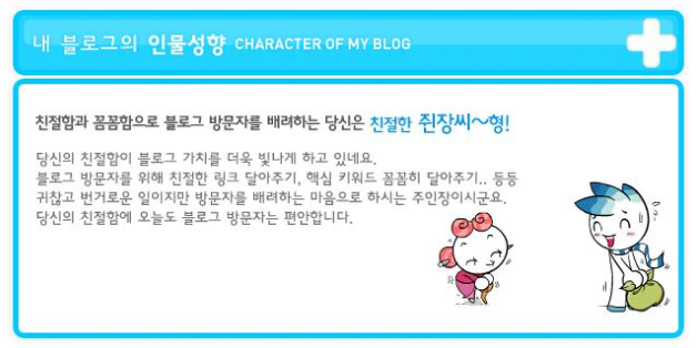 네이버 블로그 통계 시스템에서 제공하는 세세한 내용을 보면 좀 더 다양한 기준을 적용해서 블로거의 개성을 표현할 수 있었을 것 같은데...