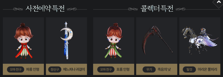 또한 효월의 종언 콜렉터즈 에디션도 판매가 진행 중입니다. 캐릭터 육성에 필수인 ‘메느피나 귀걸이’를 포함한 다양한 아이템을 사전예약 및 콜렉터 특전으로 제공하는데요, 개인적으로는 저 중 ‘아리온’만으로도 충분히 구매할 가치가 있다고 생각하네요. (저 멋진 자태를 보라…)