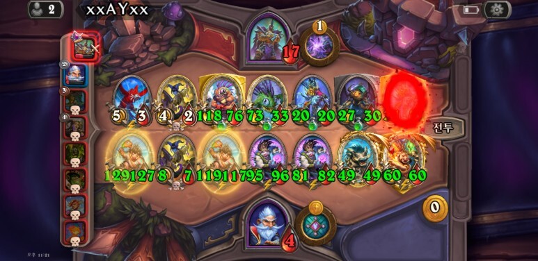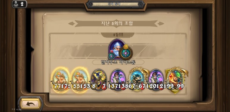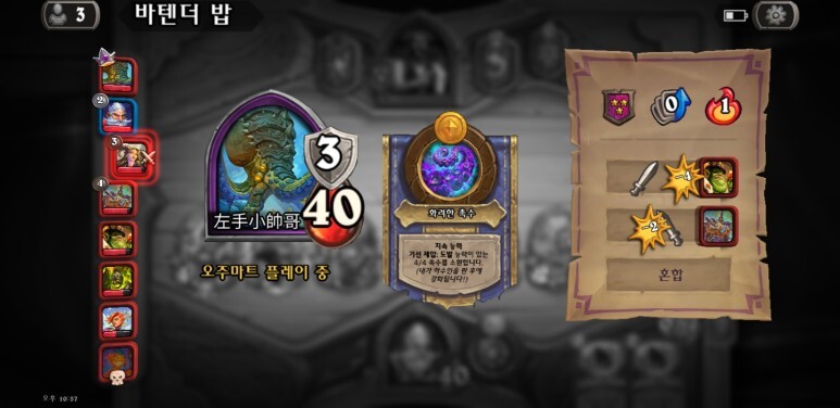 바르덴 던그래스프 좋더라고요. 좋은 하수인 페어를 쉽게 맞출 수 있다는 것만으로도 좋은데, 페어가 얼려진 상황에서 다음 턴이 되면서 리롤이 될 때 운이 좋으면 바로 황금을 맞출 수 있는 찬스가 생기더라고요.