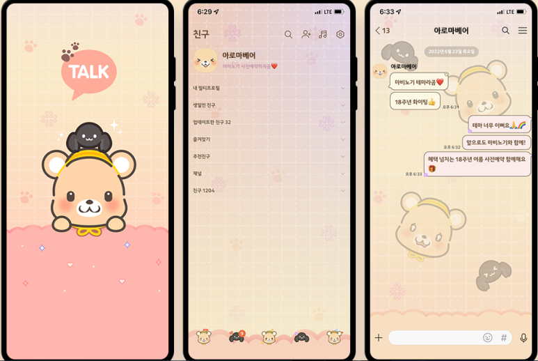 여담으로, 업데이트 기념으로 배포하는 카카오톡 테마가 귀여워서 한번 받아봤는데, 글이 눈에 잘 안 들어와서 별로네요.