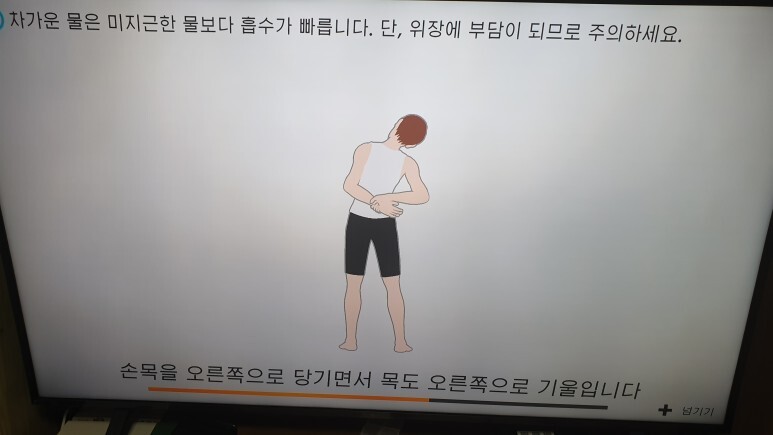 일반적으로 차가운 물보다는 미지근한 물이 건강에 좋다고 하지만, 수분이 필요할 때는 흡수가 빠른 차가운 물이 좋겠네요.