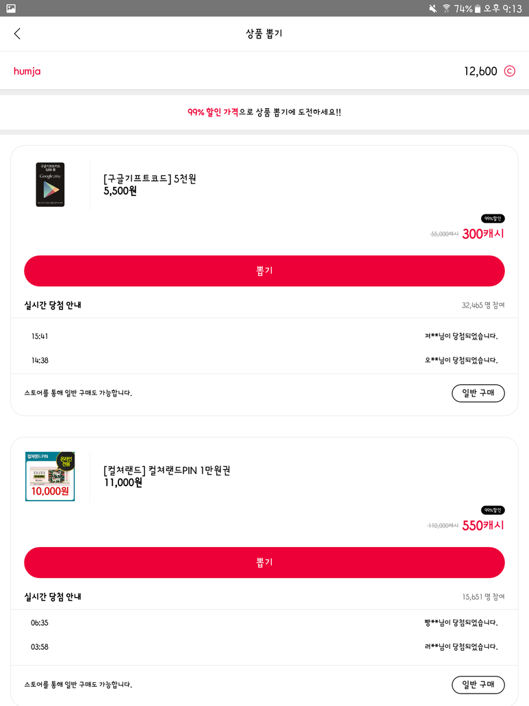상품 뽑기 기능과 스토어 기능도 리워드앱인 만큼 당연히 있습니다.