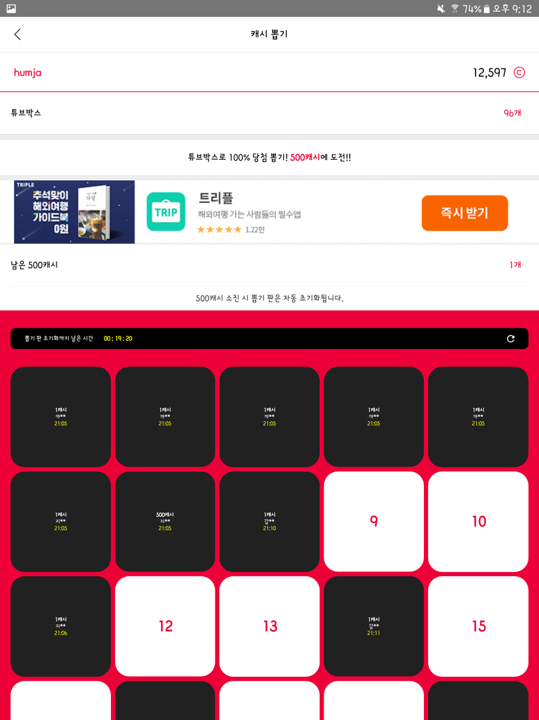 5박스로 캐시 뽑기 기능을 사용할 수도 있는데, 도박성이 강해서 그냥 차근차근 적립하는 게 낫습니다.