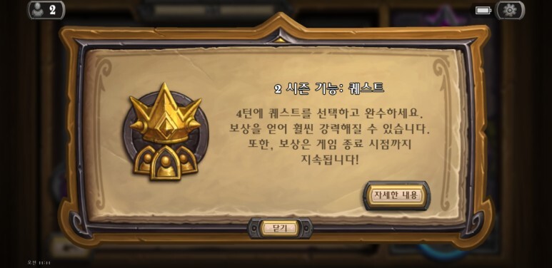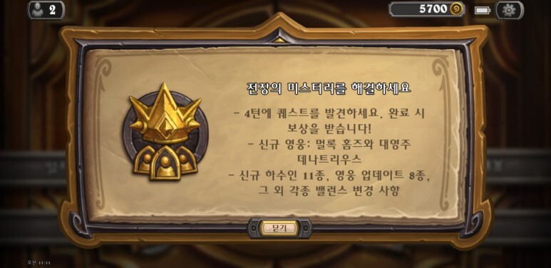 하여튼, 패치에 대한 자세한 내용은 링크를 통해서 알 수 있다는데, 제 폰에서는 하스스톤 나갔다 들어오면 하스 재접속해야 되는데, 제발 좀 인게임에서 패치 내용 볼 수 있게 해주면 안 될까요?ㅜㅜ