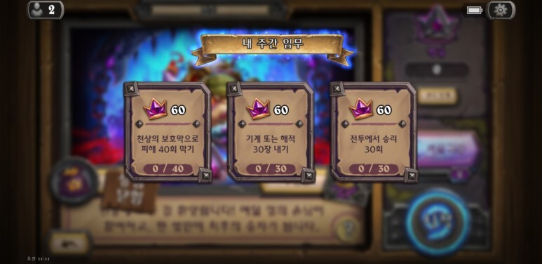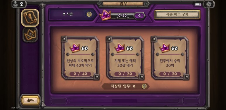 기존 퀘스트 시스템과는 다르게 퀘스트 공간이 꽉 차면 새 임무를 받을 공간이 생길 때까지 저장해 둘 수 있다는데, 시즌이 끝날 때까지 계속 쌓인다고 하므로 기존 퀘스트처럼 재깍재깍 깰 필요는 없겠군요.