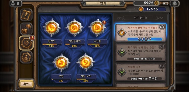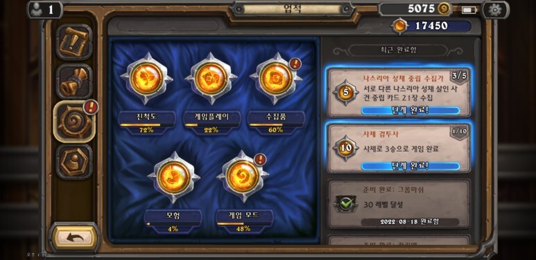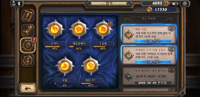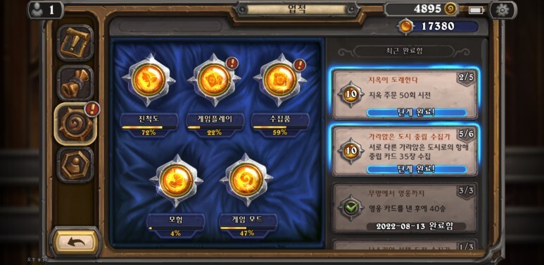 | [하스스톤] #290 - 24.2 패치. 전장 2시즌 전장의 길 도입. 퀘스트 시스템 추가. (스샷 정리 11) (0) | 2022.09.14 |