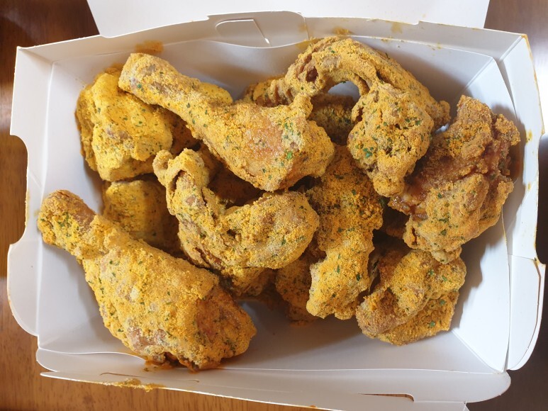 동생이 매운 걸 워낙 못 먹어서 순한 맛으로 주문했는데요, 어차피 치킨 두 개 주문하는데 그냥 살짝 매콤한 맛으로 주문할 걸 그랬다 후회했습니다. 일단 순한 맛은 이도 저도 아닌 느낌.