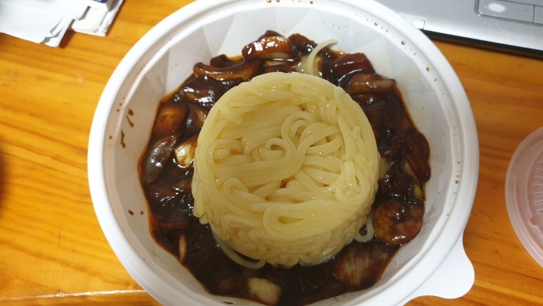 간짜장인지 취향짜장인지는 기억 안 나는데, 여튼 간에 면이 불어서 푸딩처럼 모양 잡힌 게 어이가 없어서 찍었습니다. 전에 잡채처럼 장시간 냉장고에 보관해둔 것도 아닌데... 면류는 역시 식당 가서 먹는 게 맞는 것 같아요.