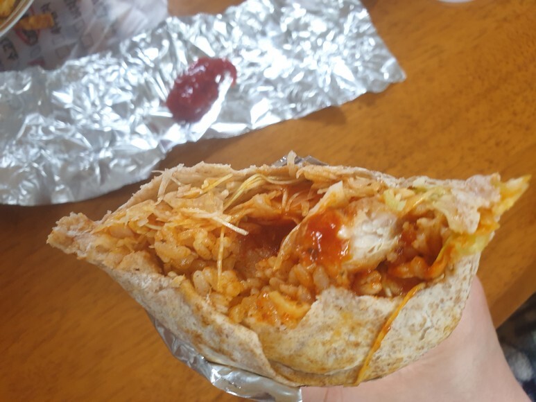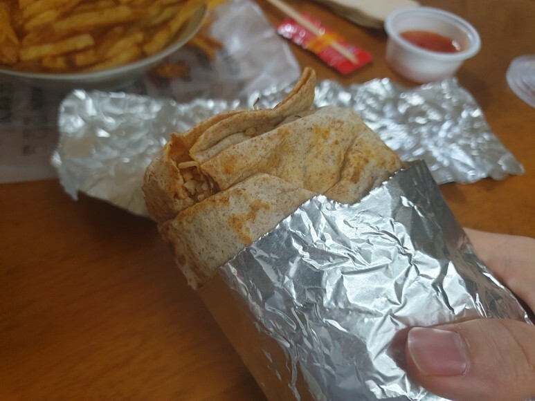 220318. 밀플랜비 숭실대점. 치킨라이스 부리또 5500원.