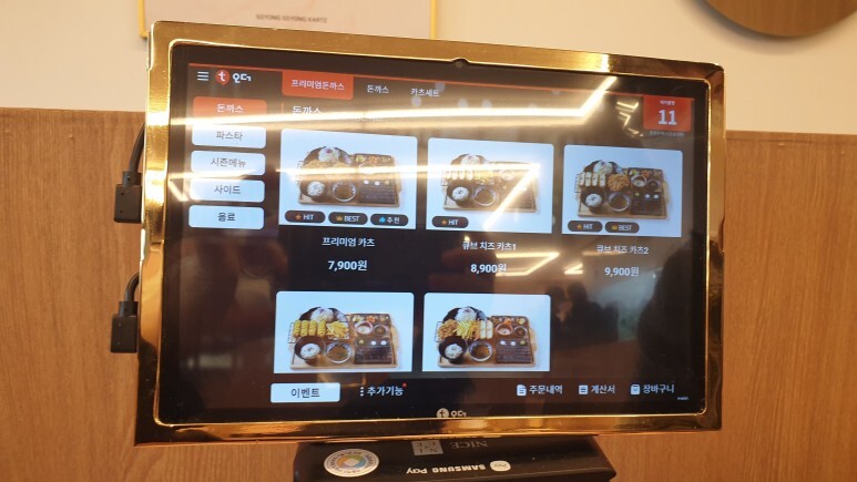 여담으로, 요즘 모든 테이블에 주문 가능한 모니터가 있는 식당이 종종 보이는데, 신기한 점은 여기처럼 완성된 음식을 내놓는 곳이면 몰라도 고기를 테이블에서 굽는 식당에서도 은근히 많이 사용한다는 겁니다. 왜냐하면 기름 튀는 걸 어떻게 커버하나 싶거든요.