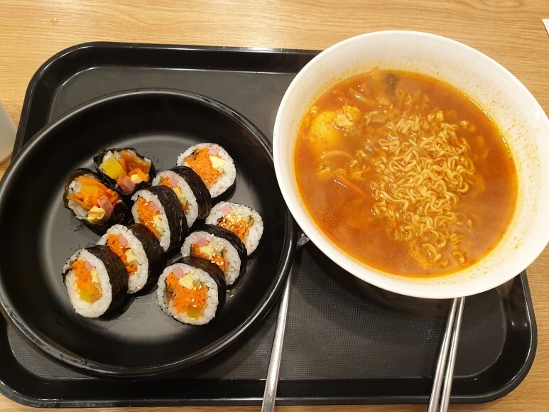 220320. 싸다김밥 압구정역점. 라면 4000원. 싸다김밥 2500원.