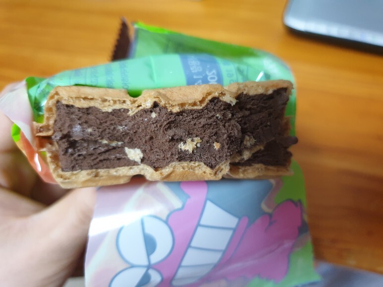 제품 자체는 전형적인 모나카 아이스크림입니다.