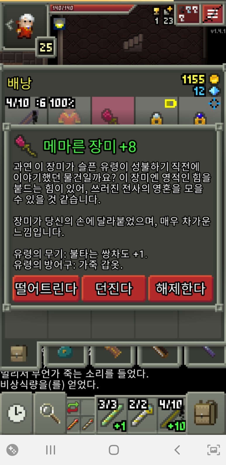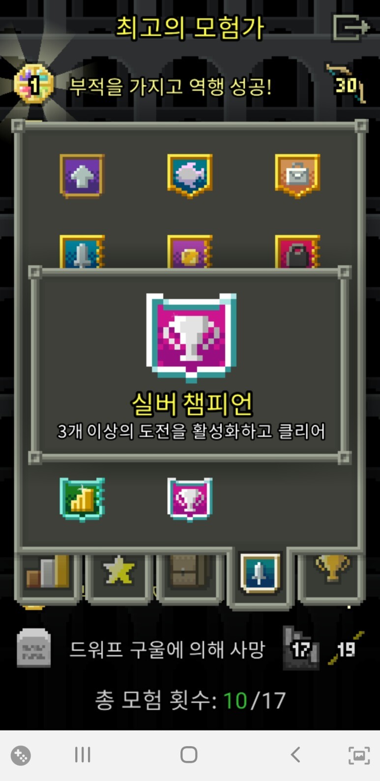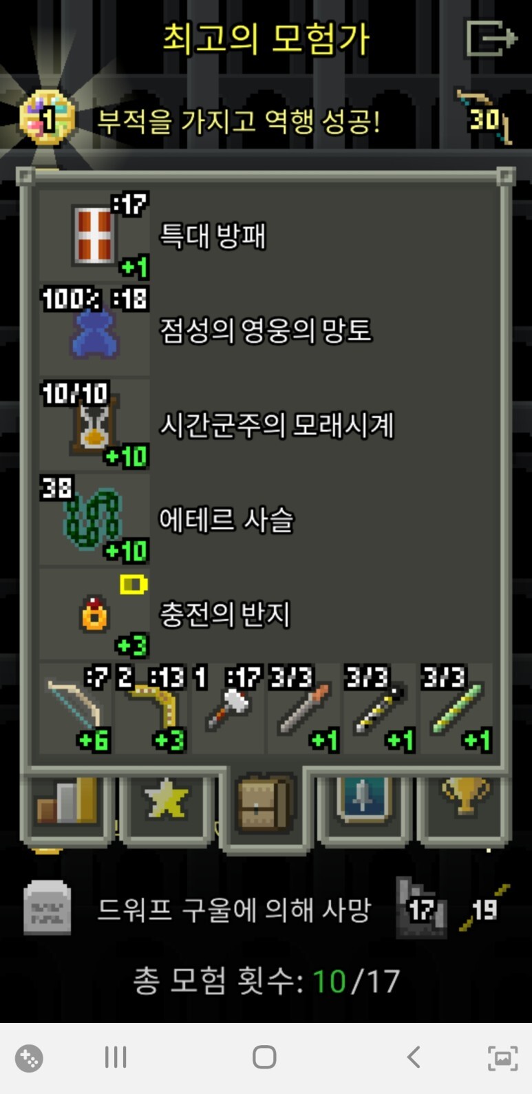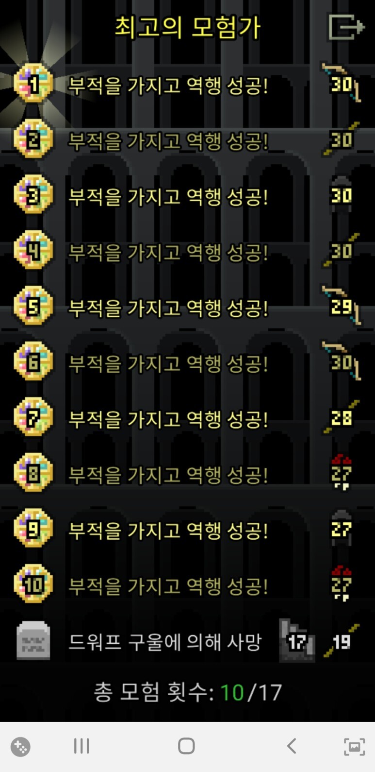 플레이스토어에 추천 게임으로 'Shattered Pixel Dungeon'이 떠서 오랜만에 재설치해봤습니다. 처음 도전은 실패했지만 다음 회차에 바로 트라이 성공했습니다. 4년 정도 만에 다시 잡은