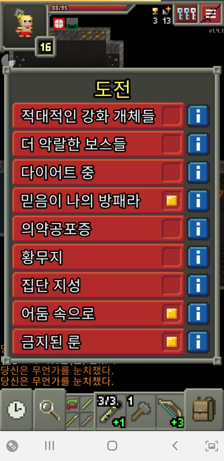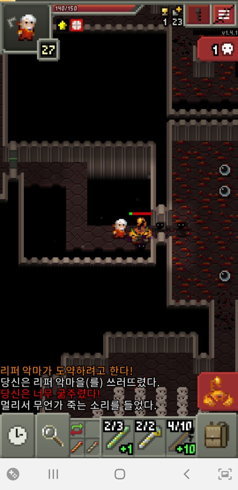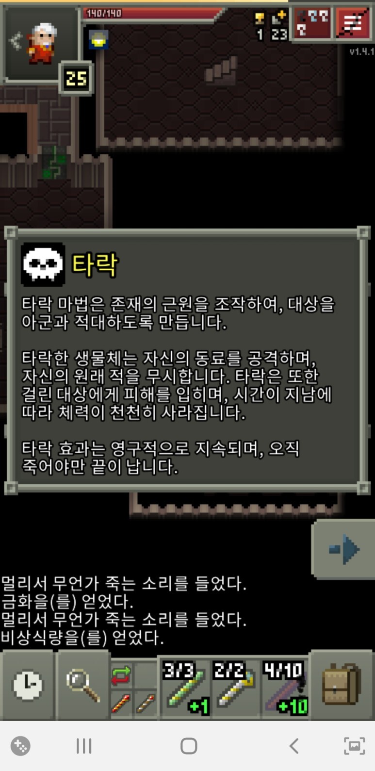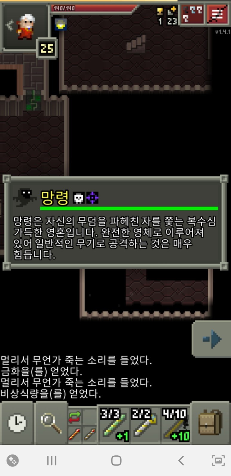 플레이스토어에 추천 게임으로 'Shattered Pixel Dungeon'이 떠서 오랜만에 재설치해봤습니다. 처음 도전은 실패했지만 다음 회차에 바로 트라이 성공했습니다. 4년 정도 만에 다시 잡은