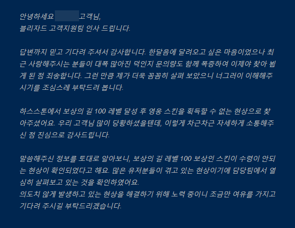 뭐... 하스스톤 유저로서 대부분은 버그라는 것도 알고, 게임사 측에서 해당 문제를 인지하고 있고 곧 해결될 거라고 하니까 그 부분도 기다리면 되니 괜찮지만, 11월 8일에 공식적으로 발표한 내용을 11월 12일이 됐는데도 같은 회사의 고객지원팀에서 모르는 건 대체 뭐죠? 그것도 한참 이슈가 되는 내용인데 말이죠.