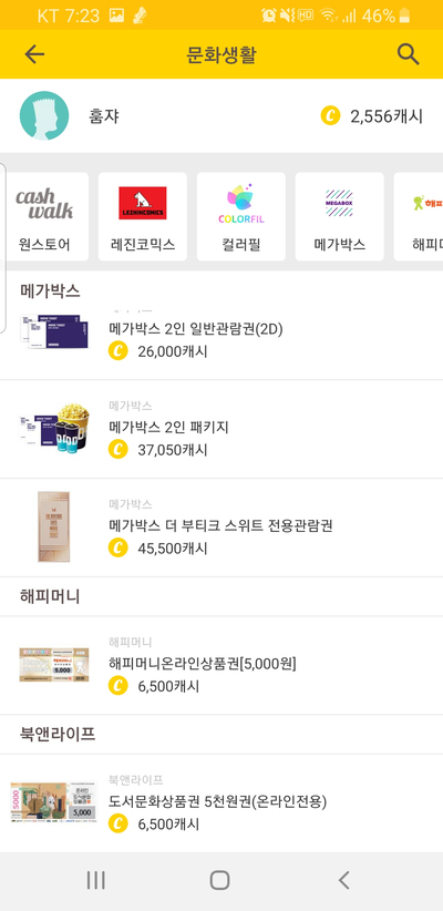 저는 모은 캐시를 보통 문화생활 항목에서 상품권을 구입하는 데 사용합니다.
