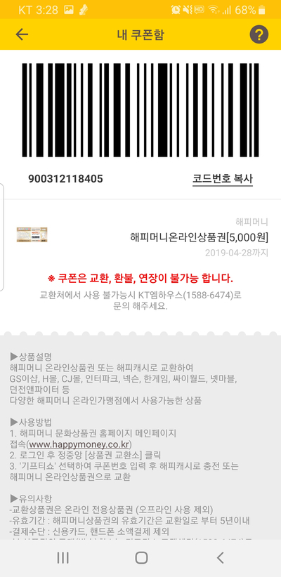혹시 해서 말하는데, 위 상품권은 이미 사용했으니 괜히 고생하지 마세요.