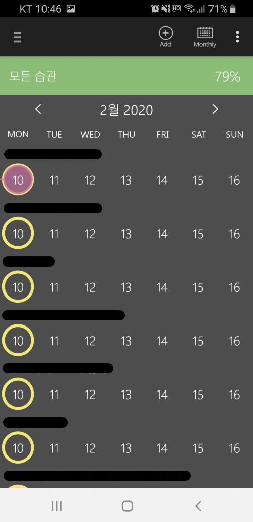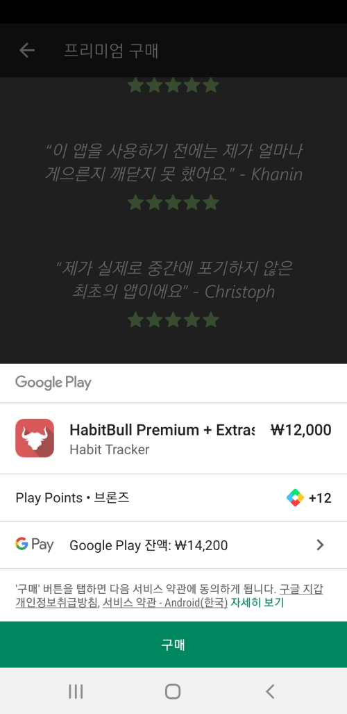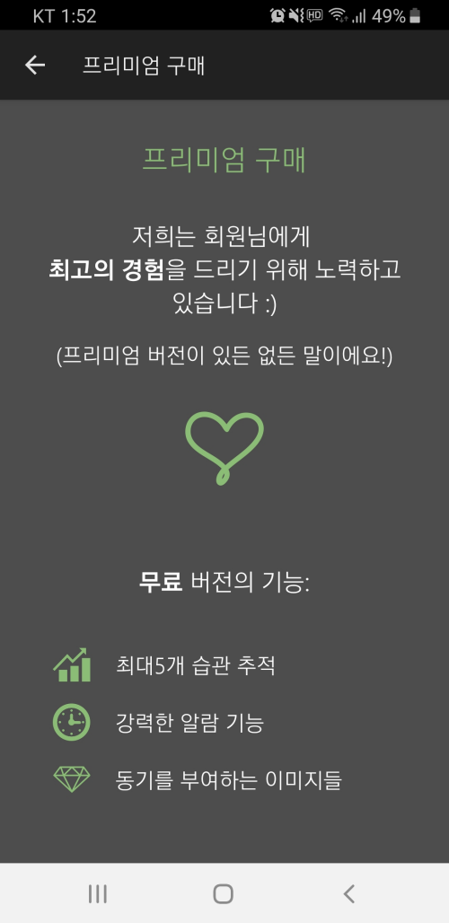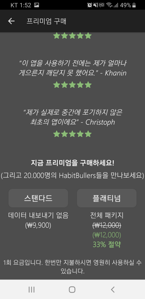 하여튼 저는 무료 버전 사용하다가 추가로 더 많은 습관을 추적하고 싶어서 유료 버전을 구매했습니다.