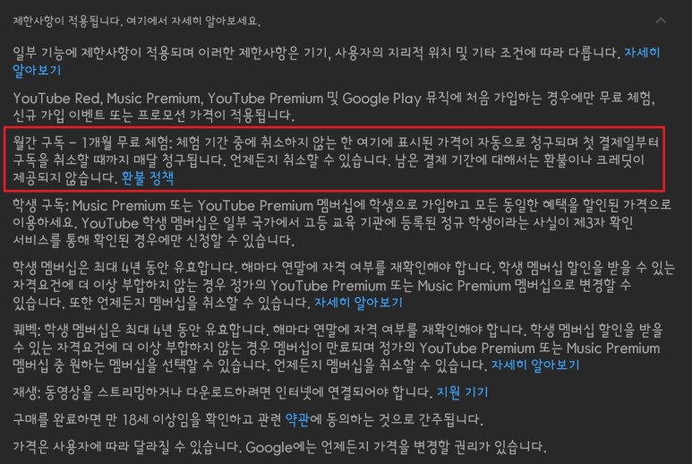 몇몇 기능에 관심이 가기는 했지만, 체험 기간 도중 구독을 취소하지 않으면 자동으로 결제된다는 약관이 걸려서 지금까지 무료체험을 사용하지 않고 있었습니다. 개인적으로 광고를 보는 것 자체도 나쁘지 않게 생각해서 주요 기능인 광고 제거 기능이 그렇게 끌리지 않기도 했고요.